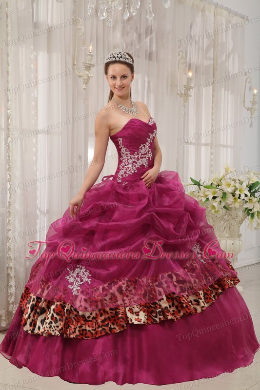 Leopard Prints Quinceanera Dress Sweetheart Organza