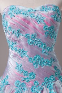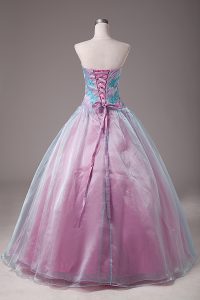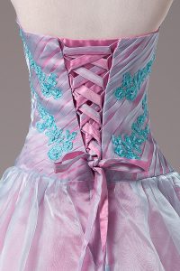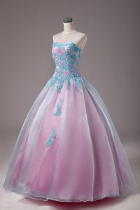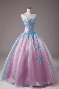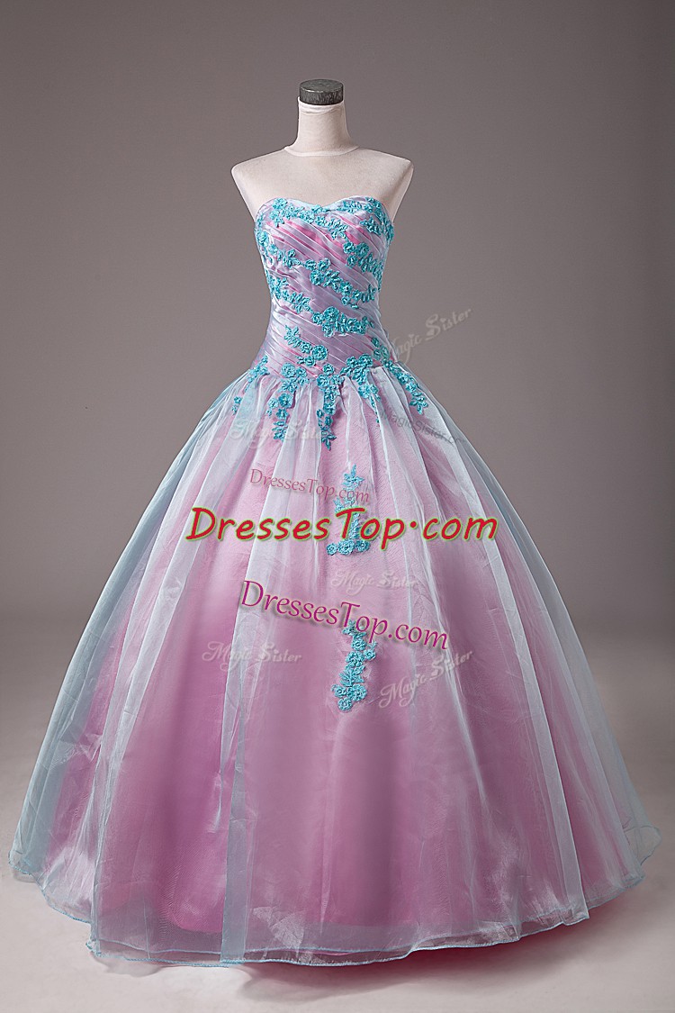 Light Blue Ball Gowns Sweetheart Sleeveless Organza Floor Length Lace Up Appliques Quinceanera Gowns