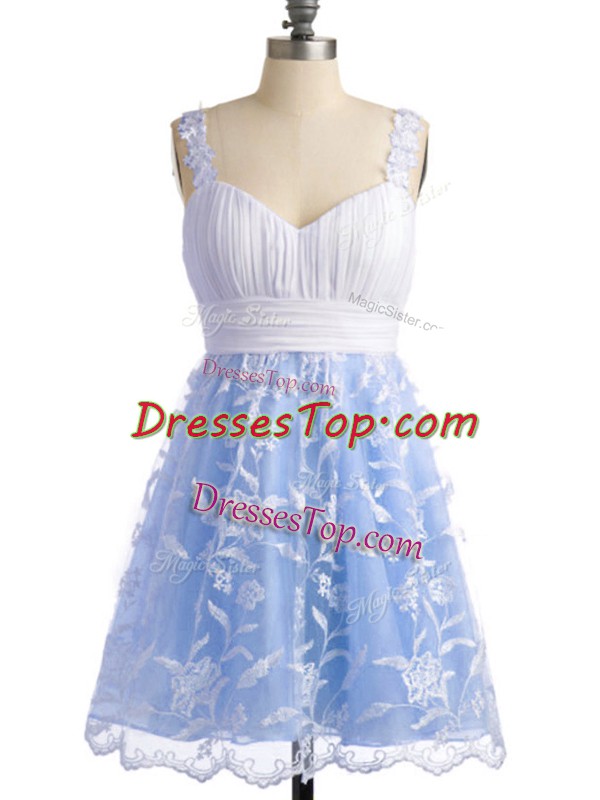 Light Blue Lace Lace Up Damas Dress Sleeveless Knee Length Lace