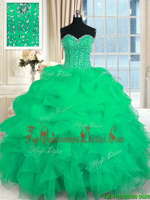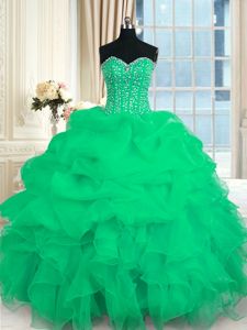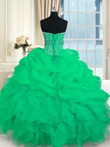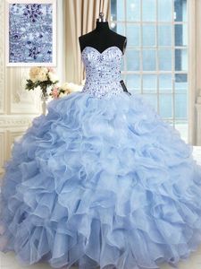 Light Blue Lace Up 15th Birthday Dress Beading and Ruffles Sleeveless Floor Length