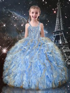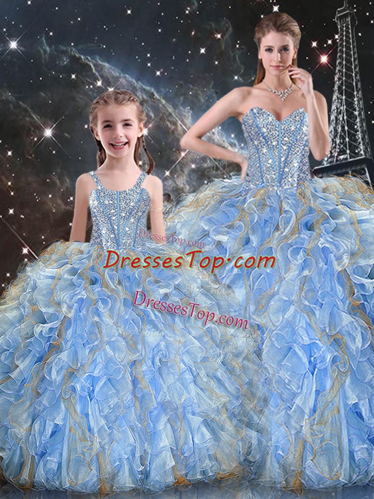 Light Blue Lace Up Sweetheart Beading and Ruffles Sweet 16 Quinceanera Dress Organza Sleeveless