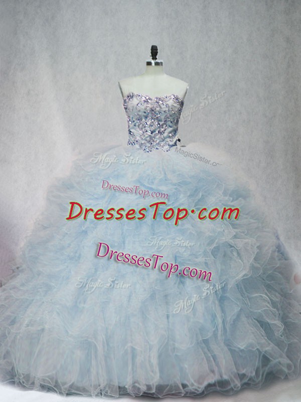 Light Blue Quinceanera Gown Sweetheart Sleeveless Brush Train Lace Up