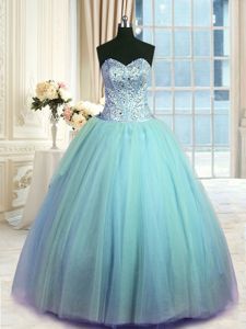 Light Blue Sleeveless Organza Lace Up Sweet 16 Quinceanera Dress for Military Ball and Sweet 16 and Quinceanera