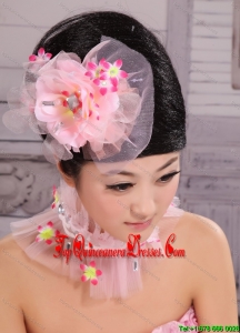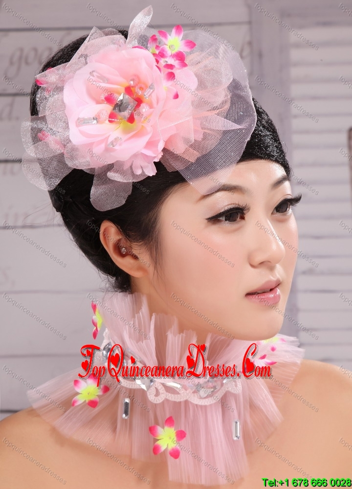 Light Pink Chiffon and Net Big Flowers With Rhinestones For Party