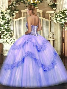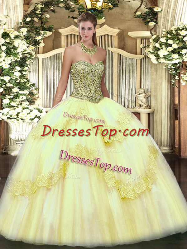 Light Yellow Ball Gowns Tulle Sweetheart Sleeveless Beading and Appliques Floor Length Lace Up Quinceanera Dress