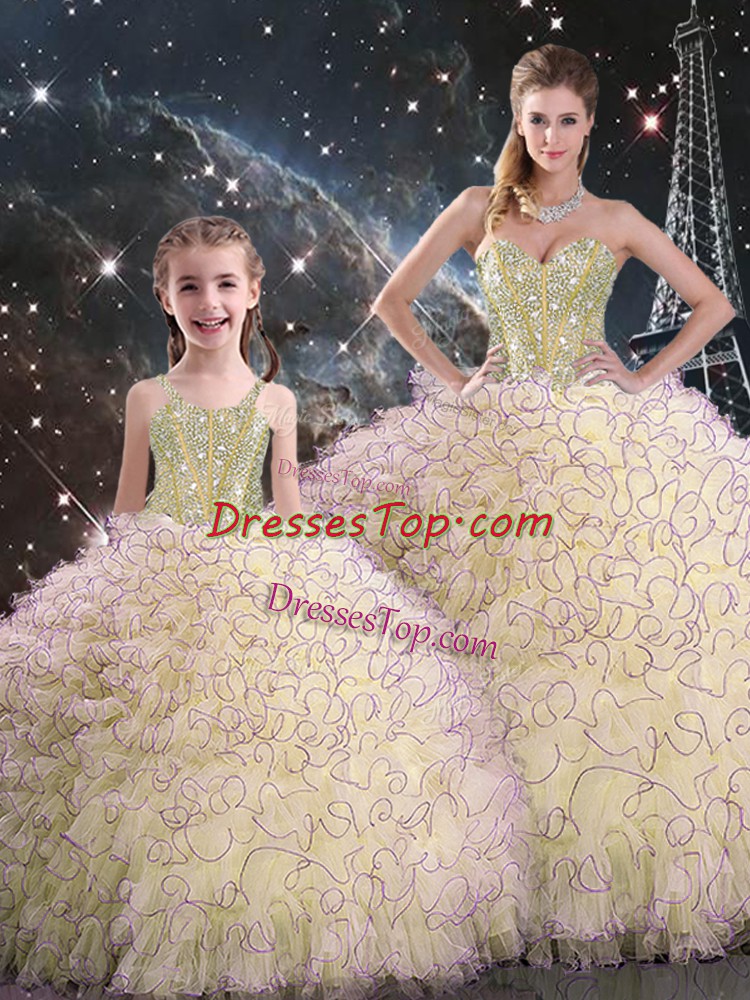 Light Yellow Lace Up Sweetheart Beading and Ruffles Quinceanera Gowns Organza Sleeveless