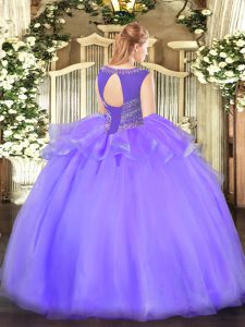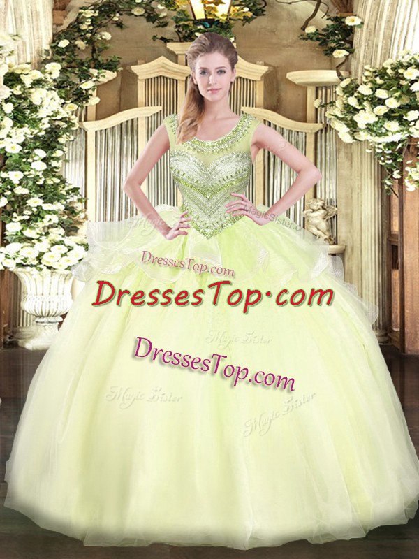Light Yellow Organza Lace Up Sweet 16 Quinceanera Dress Sleeveless Floor Length Beading