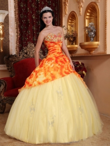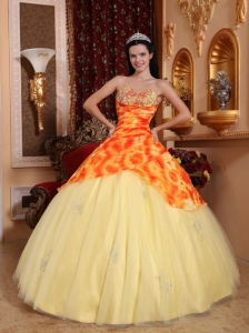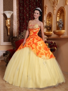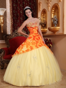 Light Yellow Quinceanera Dress Sweetheart Tulle Beading