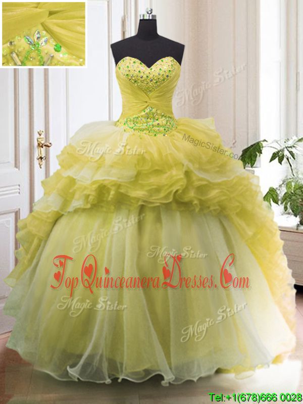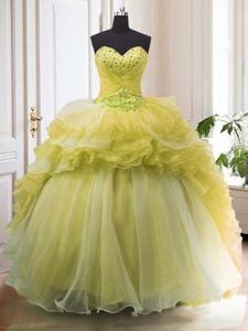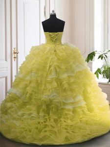 Light Yellow Sleeveless Court Train Beading and Ruffled Layers With Train Sweet 16 Dress