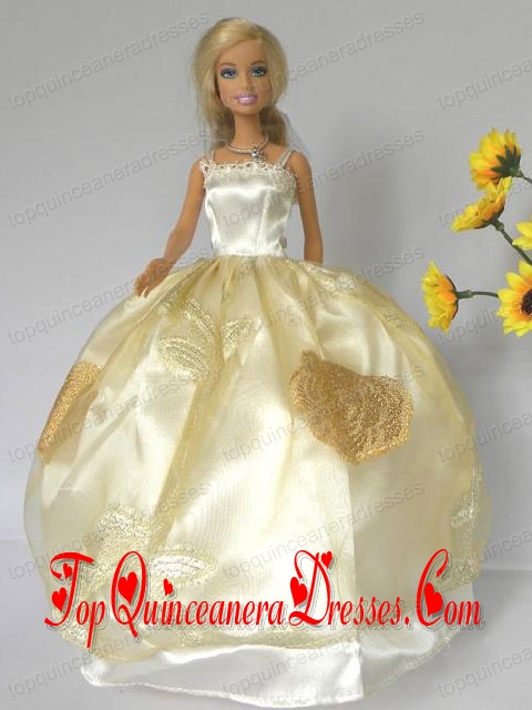Light Yellow Straps Appliques Handmade Dresses Fashion Party Clothes Gown Skirt For Barbie Doll