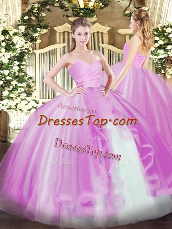 Lilac 15 Quinceanera Dress Military Ball and Sweet 16 and Quinceanera with Ruffles Sweetheart Sleeveless Lace Up