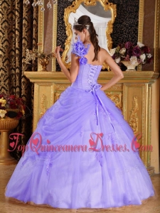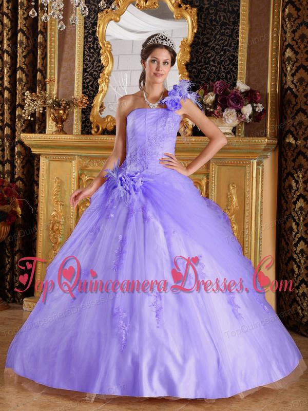 Lilac Ball Gown One Shoulder Floor-length Appliques Tulle Vestidos de Quinceanera