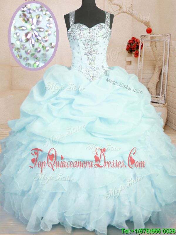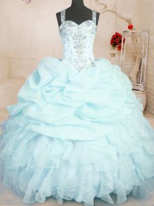 Lilac Ball Gowns Organza Straps Sleeveless Beading and Ruffles Floor Length Zipper Quinceanera Dress