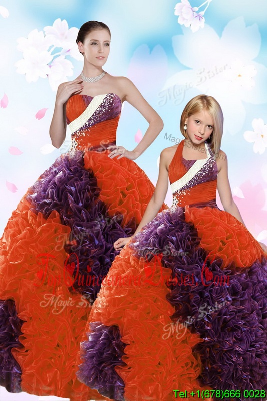Lilac Ball Gowns Organza Sweetheart Sleeveless Beading and Ruffles and Pick Ups Floor Length Lace Up Sweet 16 Dress