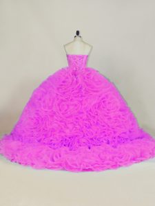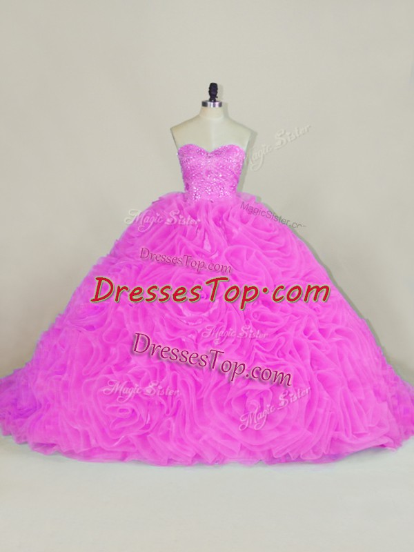 Lilac Ball Gowns Sweetheart Sleeveless Organza Chapel Train Lace Up Beading and Ruffles Quinceanera Gown