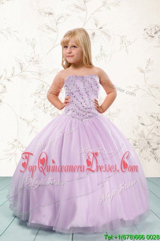 Lilac Child Pageant Dress Party and Wedding Party and For with Beading Strapless Sleeveless Lace Up