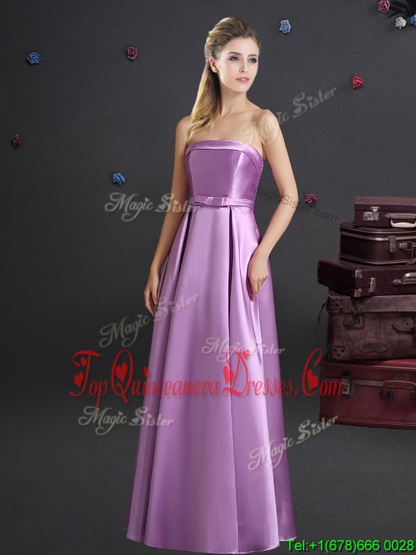 Lilac Elastic Woven Satin Zipper Quinceanera Court Dresses Sleeveless Floor Length Bowknot