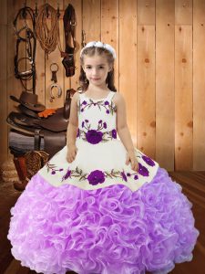 Lilac Fabric With Rolling Flowers Lace Up Straps Sleeveless Floor Length Winning Pageant Gowns Embroidery and Ruffles