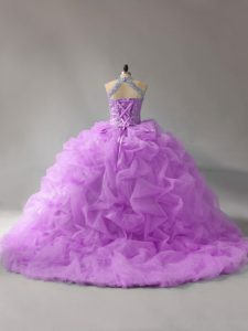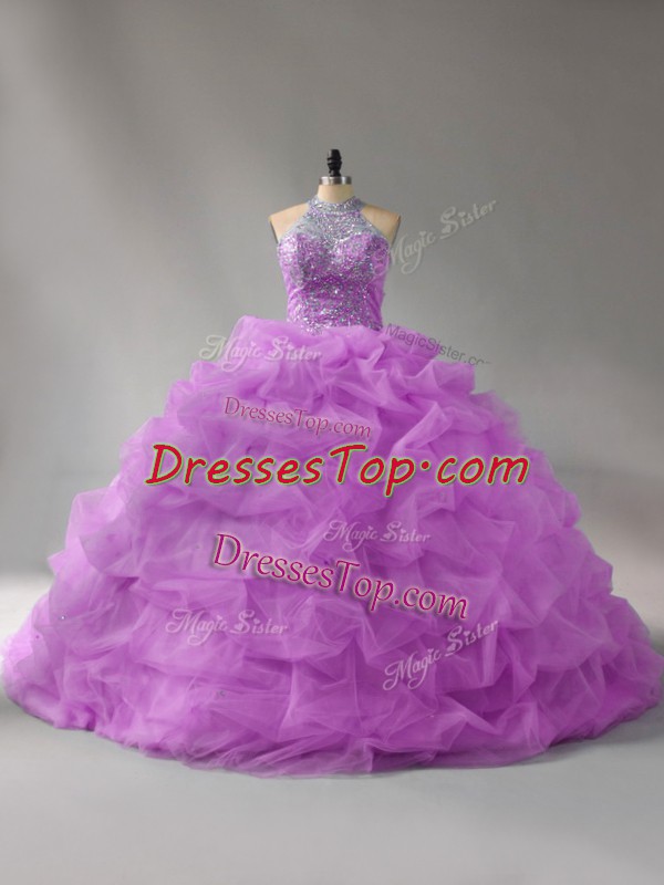 Lilac Halter Top Lace Up Beading and Pick Ups Sweet 16 Quinceanera Dress Court Train Sleeveless