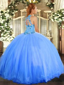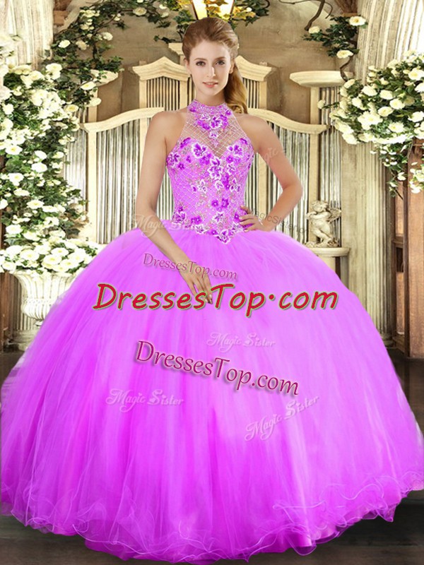 Lilac Halter Top Neckline Beading and Embroidery Ball Gown Prom Dress Sleeveless Lace Up