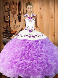 Lilac Lace Up Halter Top Embroidery 15 Quinceanera Dress Fabric With Rolling Flowers Sleeveless