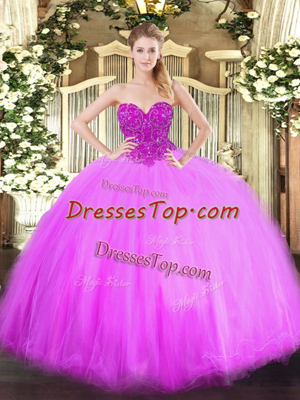 Lilac Lace Up Quinceanera Dress Beading Sleeveless Floor Length