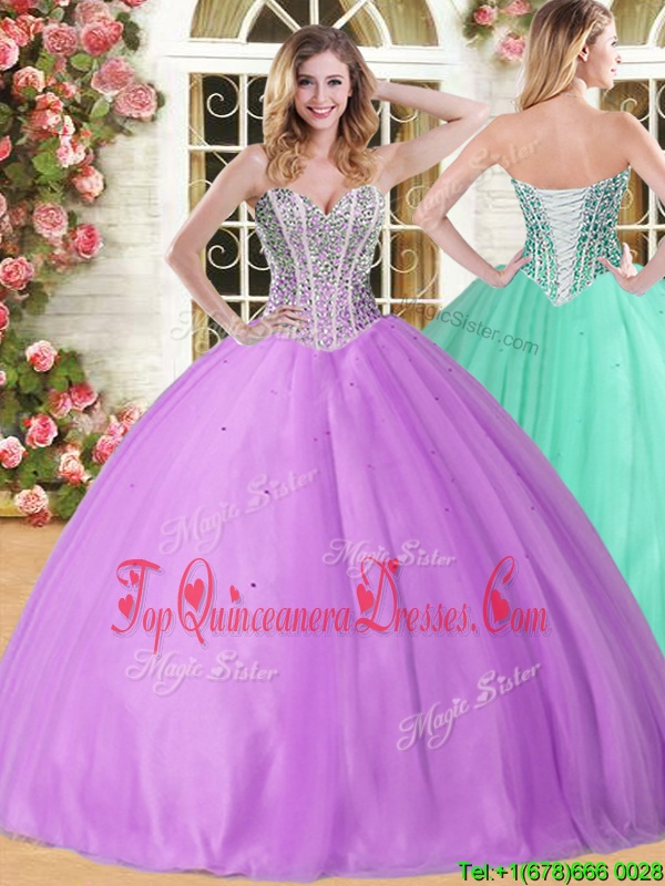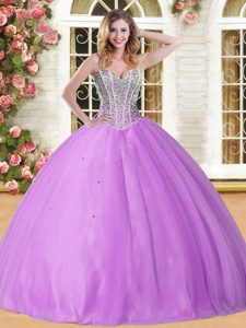 Lilac Lace Up Sweetheart Beading 15 Quinceanera Dress Tulle Sleeveless