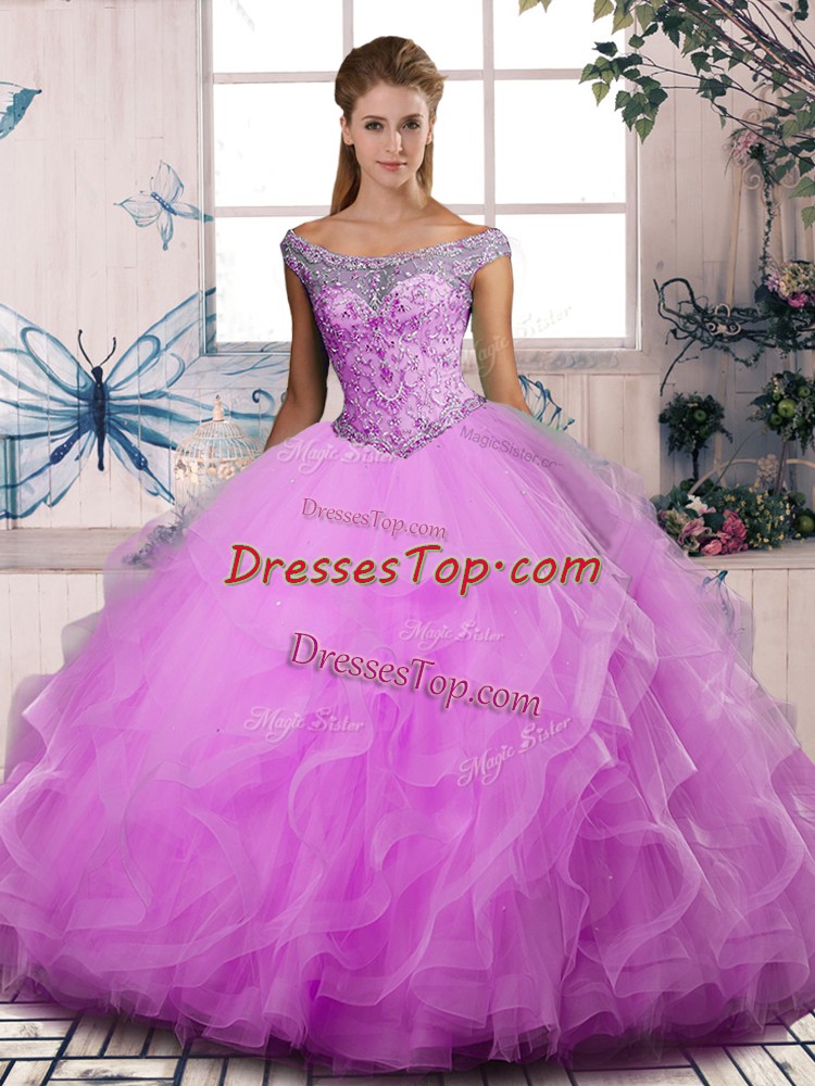 Lilac Quinceanera Dresses Sweet 16 and Quinceanera with Beading and Ruffles Off The Shoulder Sleeveless Lace Up