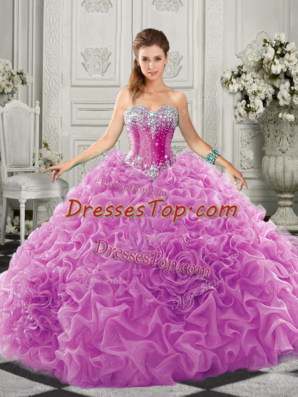 Lilac Quinceanera Gown Sweetheart Sleeveless Court Train Lace Up