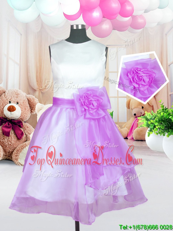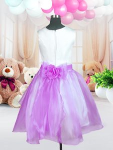 Lilac Scoop Neckline Hand Made Flower Glitz Pageant Dress Sleeveless Zipper