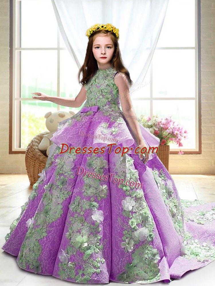 Lilac Sleeveless Appliques Backless Kids Pageant Dress