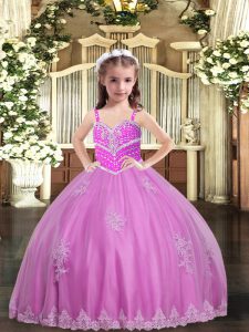 Lilac Sleeveless Appliques Floor Length Little Girl Pageant Dress