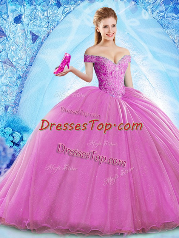 Lilac Sleeveless Beading Lace Up 15 Quinceanera Dress