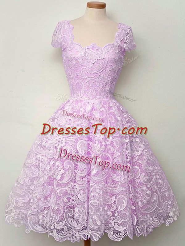 Lilac Sleeveless Lace Floor Length Quinceanera Dama Dress
