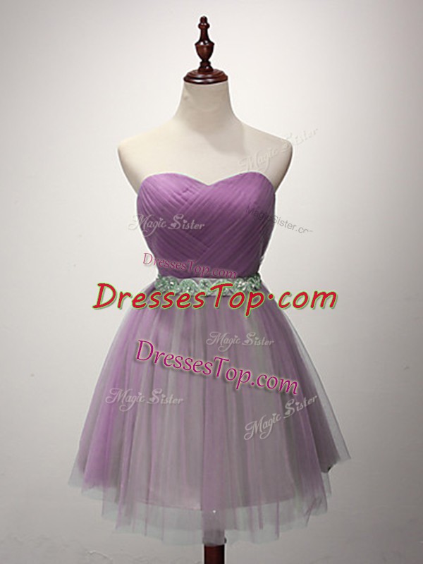 Lilac Sleeveless Mini Length Ruching Lace Up Damas Dress