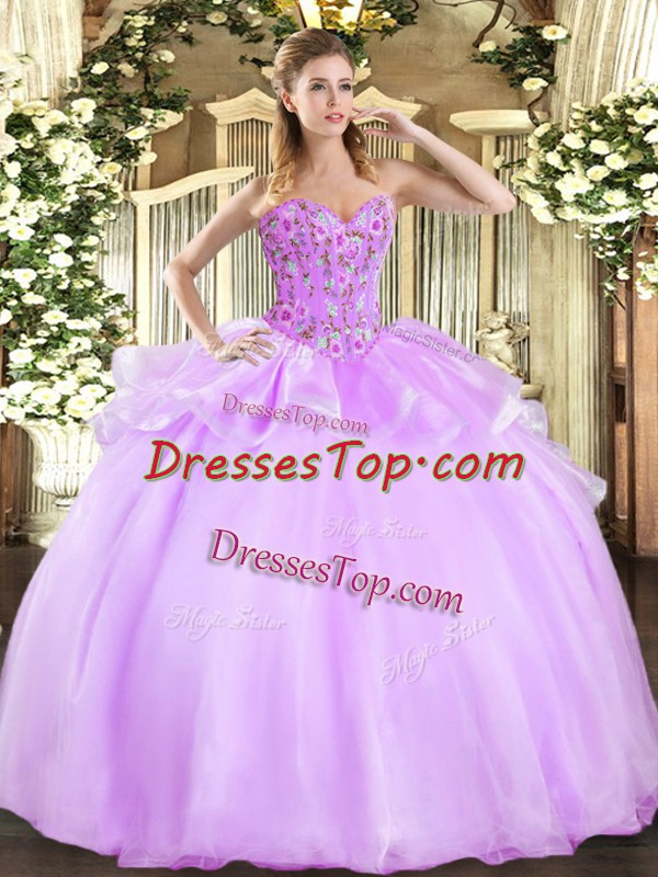 Lilac Sleeveless Organza Lace Up Quince Ball Gowns for Military Ball and Sweet 16 and Quinceanera
