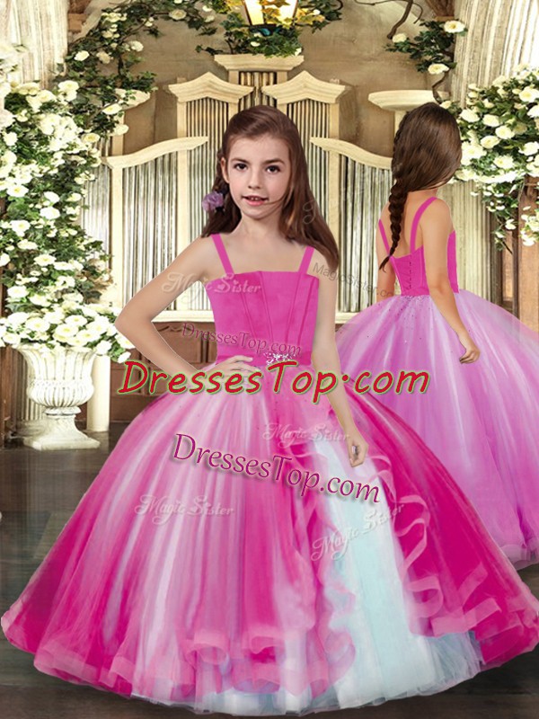 Lilac Sleeveless Tulle Lace Up Little Girl Pageant Dress for Party and Sweet 16 and Wedding Party