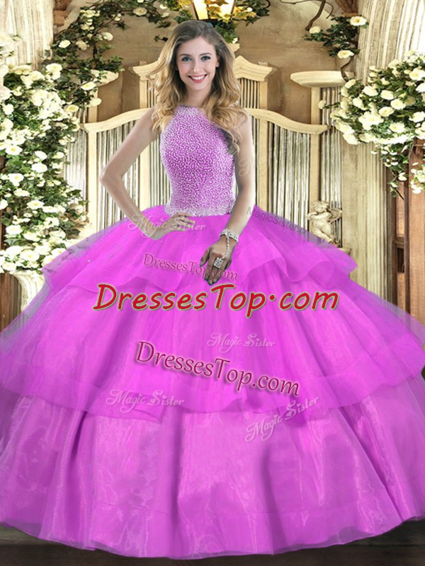 Lilac Sleeveless Tulle Lace Up Sweet 16 Dress for Military Ball and Sweet 16 and Quinceanera