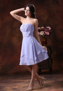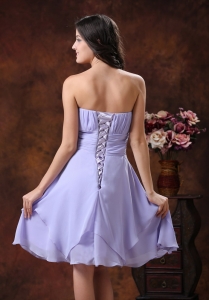 Lilac Strapless Ruched Dama Dresses for Quinceanera Waistband