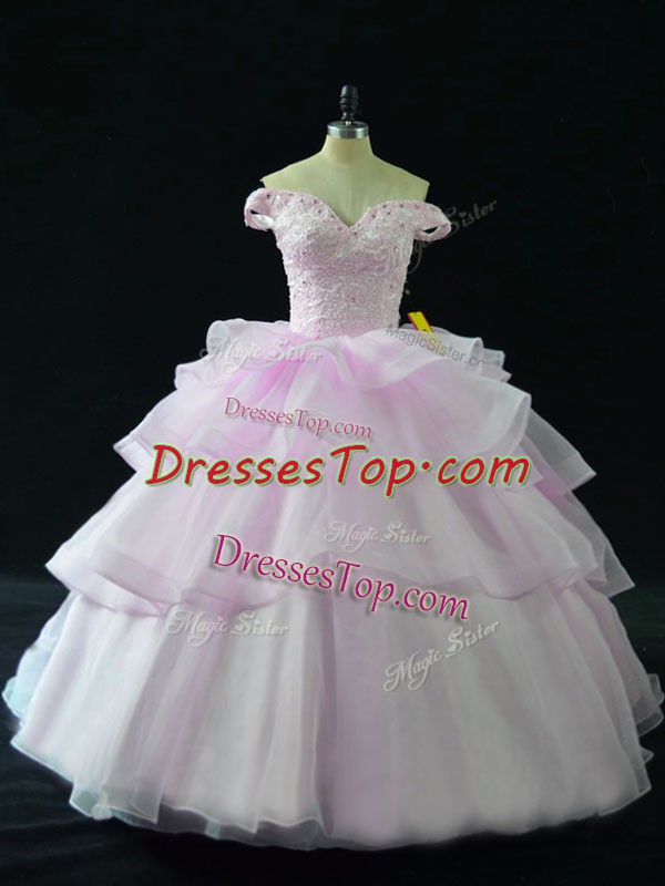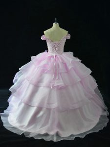 Lilac Sweet 16 Dresses Organza Brush Train Sleeveless Beading and Ruffled Layers