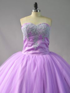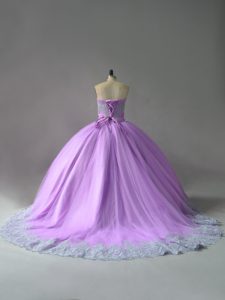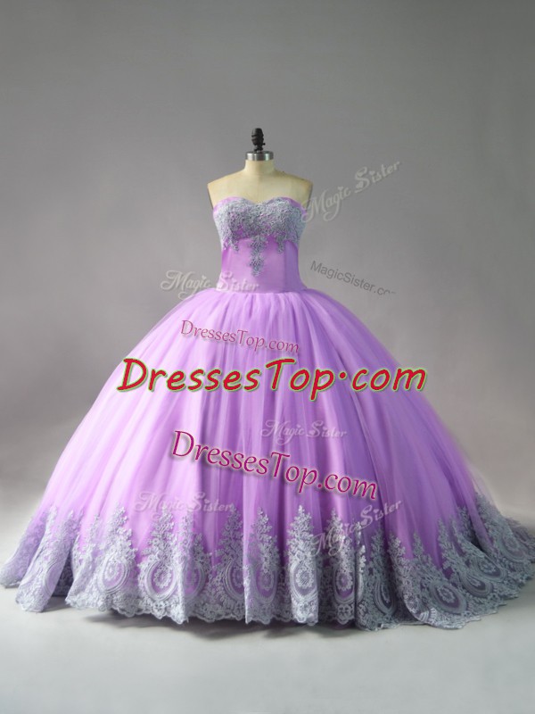 Lilac Sweetheart Lace Up Appliques Sweet 16 Dresses Court Train Sleeveless