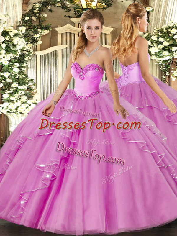 Lilac Sweetheart Lace Up Beading and Ruffles Quinceanera Dress Sleeveless