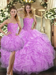 Lilac Sweetheart Lace Up Beading and Ruffles Sweet 16 Dresses Sleeveless