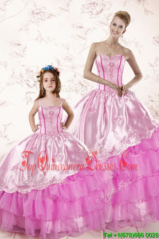 Lilac Sweetheart Lace Up Embroidery and Ruffled Layers Quinceanera Gown Sleeveless