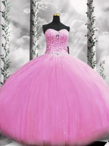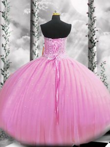 Lilac Tulle Lace Up Sweetheart Sleeveless Floor Length Quince Ball Gowns Beading