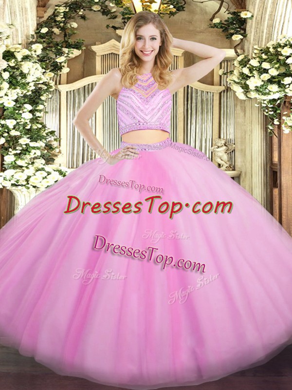Lilac Tulle Zipper 15th Birthday Dress Sleeveless Floor Length Beading and Ruffles