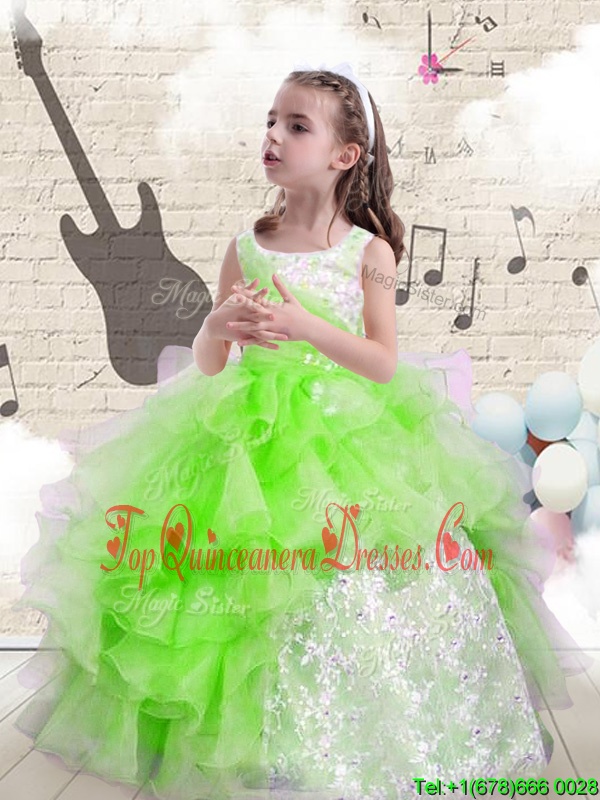 Little Girl Pageant Dress Party and Wedding Party and For with Beading and Ruffles Scoop Sleeveless Lace Up