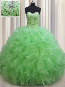 Lovely Ball Gowns Sweet 16 Dresses Sweetheart Organza Sleeveless Floor Length Lace Up