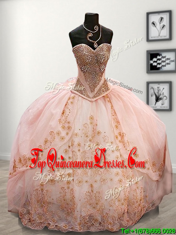 Lovely Beaded and Applique Pink Sweet 16 Dress with Puffy Skirt