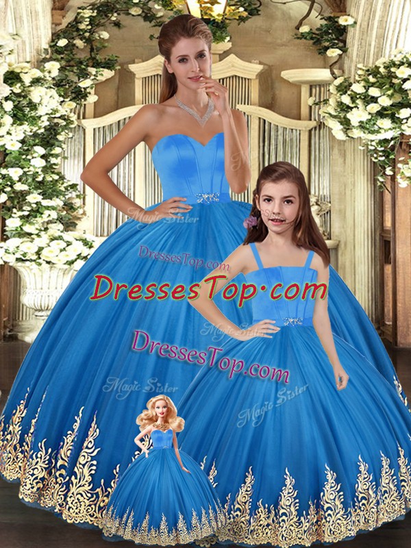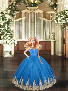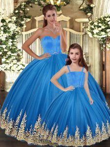Lovely Blue Ball Gowns Sweetheart Sleeveless Tulle Floor Length Lace Up Embroidery Sweet 16 Dresses